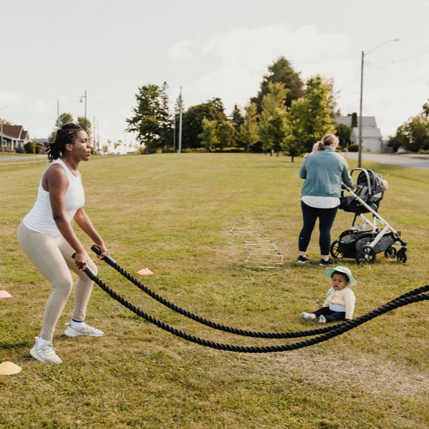 A fitness group for moms who want to get in a quality workout with baby in tow.
